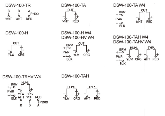 DSW シリーズは壁面に取り付け、空間の温度や湿度を計測するセンサです。